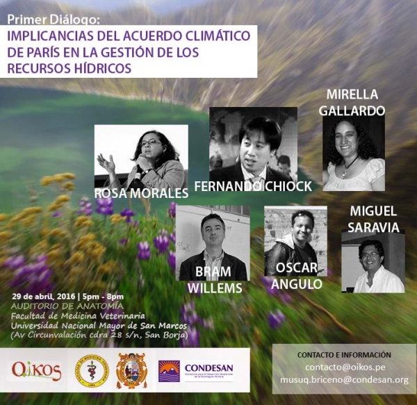 El pasado viernes 29 de abril, se llevó a cabo el primer diálogo del ciclo Diálogos entre la Ciencia y la Política, que para esta edición llevó por título: “Implicancias del Acuerdo Climático de París en la gestión de los Recursos Hídricos”, donde convergieron representantes del Ministerio del Ambiente del Perú, de la Autoridad Nacional del Agua, del Instituto de Montañas, del Centro de Competencias del Agua y de CONDESAN.