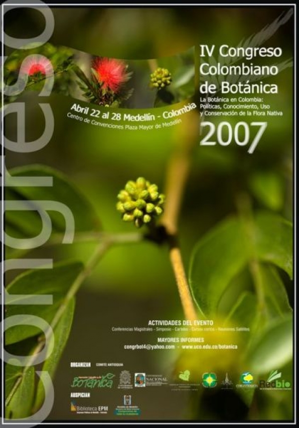 La asociación Colombiana de Botánica (ACB) y el comité organizador regional conformado por docentes e investigadores de la Universidad de Antioquia, Universidad Nacional de Colombia sede Medellín, Universidad Católica de Oriente, Jardín Botánico de Medellín, CORANTIOQUIA y RedBio, tienen el gusto de invitarlo al IV congreso Colombiano de Botánica, a realizarse del 22 al 27 de abril de 2007, en el Centro Internacional de Convenciones "Plaza Mayor" de la ciudad de Medellín.
