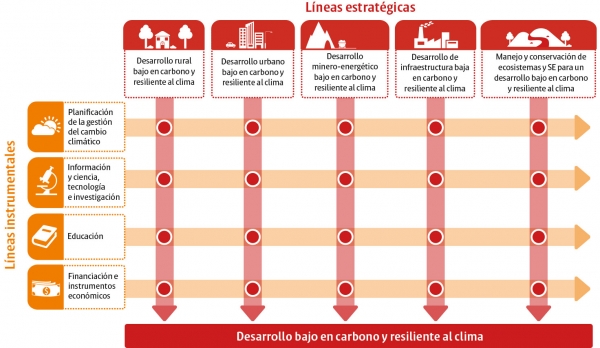 Con el objetivo de incorporar la gestión del cambio climático en las decisiones públicas y privadas para avanzar en una senda de desarrollo resiliente al clima y baja en carbono, que reduzca los riesgos del cambio climático y permita aprovechar las oportunidades que genera, el Gobierno Nacional de Colombia lanzó la Política Nacional de Cambio Climático, que además propone atender con prioridad a los sectores y territorios que sean más vulnerables o que sean fuente significativa de emisiones.