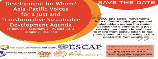 Senior representatives of major groups and other stakeholders, including the private sector are invited to submit applications to participate in the Dialogue. Major groups and other stakeholders are also invited to submit applications to attend a pre-consultation with civil society organized by the IBON International and ESCAP in collaboration with other partners.