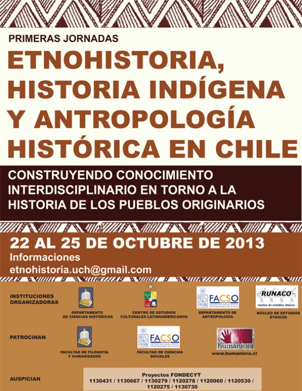 Las “Primeras jornadas de etnohistoria, historia indígena y antropología histórica en Chile: construyendo conocimiento interdisciplinario en torno a la Historia de los pueblos originarios”, se efectuarán desde el 22 al 25 de octubre, en las siguientes sedes de la Universidad de Chile: