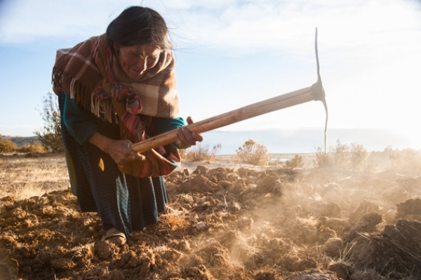 Elizabeth Villanova of Puno, Peru, spins wool while tending her alpaca flock. Photo by Annie Griffiths for Heifer International, courtesy of Ripple Effect Images.