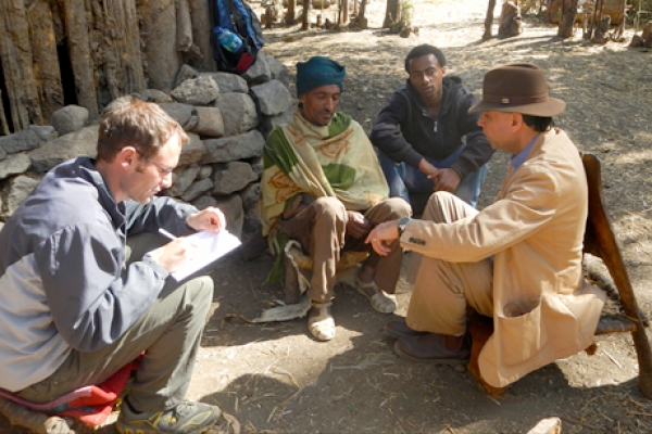 He works closely with one family in each of 18 villages to build strong relationships. He engages them in participatory research, such as community meetings in which people from low and high elevations are encouraged to share their knowledge about the affects of eucalyptus and climate change on local plants. To build resilience and reduce the vulnerability of food systems security to climate change impacts, it is important to maintain traditional knowledge and plant diversity, and to share knowledge between Semien communities and indigenous communities around the world, Ruelle said.