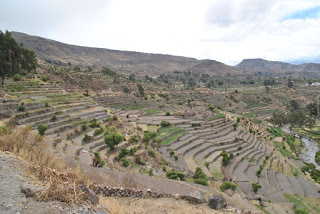 Vista panorámica de andenes (terrazas), en Andamarca (Perú)