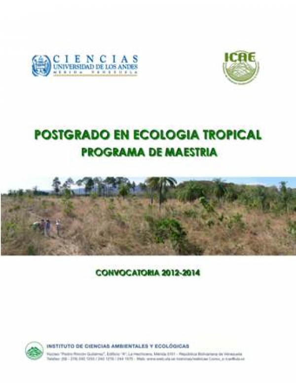 El Instituto de Ciencias Ecológicas y Ambientales (ICAE) de la Universidad de los Andes (ULA) de Mérida (Venezuela), cuenta con uno de los posgrados en Ecología Tropical más destacados de Latinoamérica. Hasta el próximo 14 de mayo podrán postularse las y los interesados en participar en la convocatoria 2012-2014.