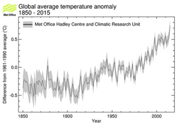 En palabras de Peter Stott del servicio meteorológico de Gran Bretaña: “2015 ha sido un año que ha roto récords en nuestro clima. Temperaturas globales promediadas han llegado a ser 1°C por encima de niveles pre-industriales por primera vez.”