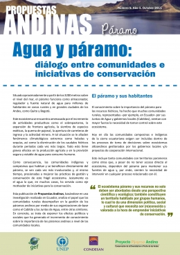 Como consecuencia, las comunidades indígenas y campesinas que habitan y se benefician directamente del páramo, se ven cada vez más involucradas y, al mismo tiempo, presionadas a mejorar las prácticas de gestión y conservación de este frágil ecosistema. Justamente es el agua la que, en muchos casos, ha servido como eje motivador de iniciativas para la conservación.