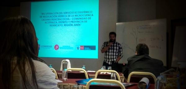 Durante el "Taller de Trabajo sobre Proyectos de inversión Pública en Recuperación de Ecosistemas, Especies y Servicios Ecosistémicos", realizado del 27 al 28 de junio y organizado por el Ministerio de Economía y Finanzas (MEF) y Ministerio del Ambiente (MINAM), CONDESAN presentó su proyecto Recuperación de SEH de Regulación Hídrica en la laguna de Huacracocha, comunidad de Acopalca, Provincia Huancayo, Departamento Junín, gracias al apoyo de la “Incubadora de Mecanismos de Retribución por Servicios Ecosistémicos" del Ministerio del Ambiente del Perú.