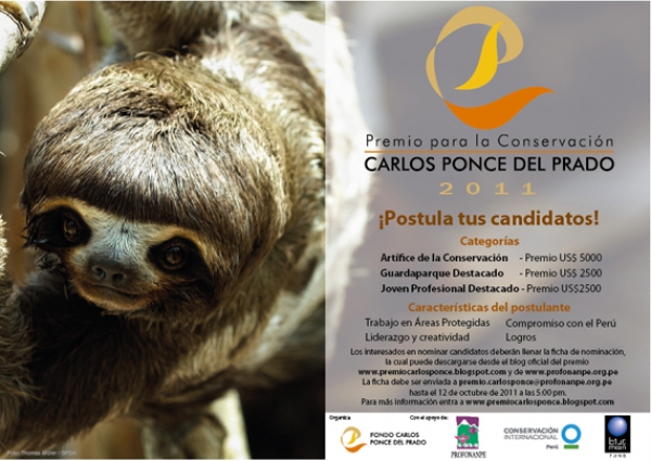 Por tercer año consecutivo, representantes de las instituciones para la conservación de la biodiversidad más importantes del Perú y el mundo, se unen para elegir a los ganadores del Premio para la Conservación Carlos Ponce del Prado 2011, en honor a uno de los personajes más conocidos y queridos de la historia reciente de la conservación.