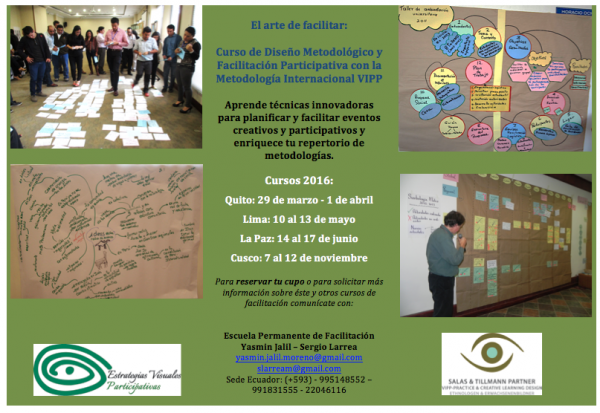 Los cursos de diseño metodológico y facilitación participativa con la metodología internacional "Visualización en Procesos Participativos" (VIPP), que se organizarán durante el 2016 en Ecuador, Perú y Bolivia, aporta a procesos de desarrollo y formación en varios continentes.