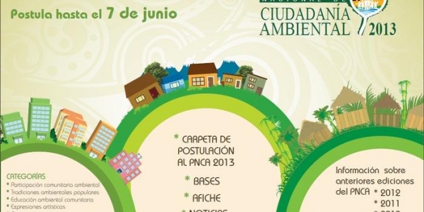 El Ministerio del Ambiente de Perú entregará el Premio Nacional de Ciudadanía Ambiental 2013, destinado a reconocer y destacar experiencias de los agentes de la sociedad y el sector privado, que han contribuido al mejor aprovechamiento de las potencialidades del entorno.