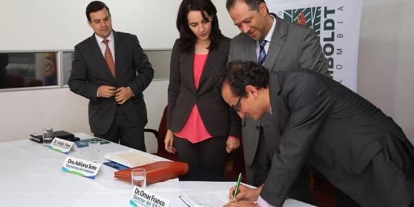La viceministra de Ambiente y Desarrollo Sostenible de Colombia, Adriana Soto, participó en el acto en el cual se firmó el Convenio entre el Instituto Alexander Von Humboldt (IAvH) y el Instituto de Hidrología Meteorología y Estudios Ambientales (IDEAM) para elaborar los insumos e información técnica para la delimitación que viene realizando el Ministerio de Ambiente y Desarrollo Sostenible (MADS), de los páramos y humedales en las regiones de Colombia afectados por el fenómeno de La Niña 2010-2011.