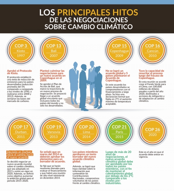 Más de veinte años de negociaciones esperan ver la luz en París. Durante la COP21, que se llevará a cabo del 30 de noviembre al 11 de diciembre en Francia, se espera firmar un acuerdo mundial para hacerle frente al cambio climático. ¿Qué cambios han logrado las negociaciones? ConexiónCOP te explica detalle a detalle cada decisión tomada.