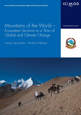 Montañas del mundo - servicios ecosistémicos en tiempos de cambio climático y global: aprovechando las oportunidades - conociendo los desafíos (elaborado conjuntamente por el ICIMOD y el Gobierno de Nepal) da a conocer el marco de la Iniciativa para las Montañas. En él se describe el contexto de la Iniciativa, explica la vulnerabilidad específica de las poblaciones de montaña y el medio ambiente de montaña, y pone de relieve la importancia de los servicios de los ecosistemas de montaña para la gente de la montaña y tanto las comunidades de las zonas bajas.