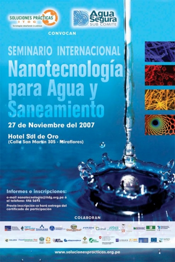 Soluciones Prácticas - ITDG y el Subcomité Agua Segura, presidido por la Oficina del Medio Ambiente del Ministerio de Vivienda, Construcción y Saneamiento, están organizando el Seminario Internacional "Nanotecnología para Agua y Saneamiento" que se desarrollará el 27 de noviembre en Lima, Perú.