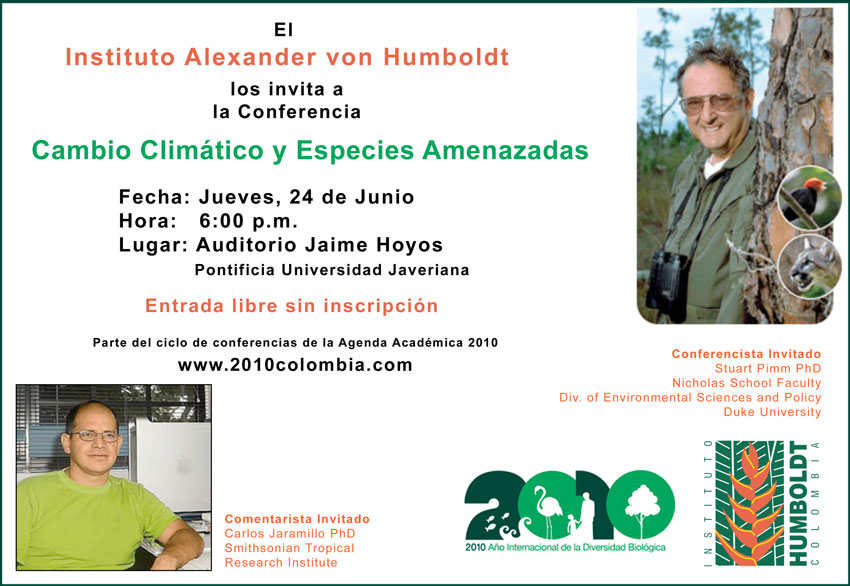 Vea la agenda de conferencias por el Año de la Diversidad Biológica del Instituto Humboldt en http://www.humboldt.org.co/2010colombia/