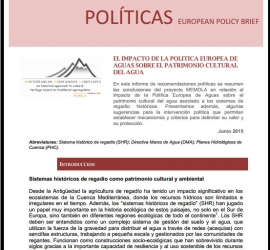 En este informe de recomendaciones políticas se resumen las conclusiones del proyecto MEMOLA en relación al impacto de la Política Europea de Aguas sobre el patrimonio cultural del agua asociado a los sistemas de regadío históricos. Presentamos además, algunas sugerencias para la intervención...