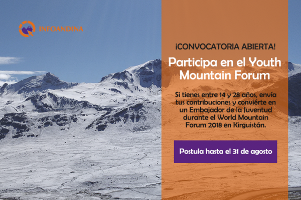 Para contribuir al debate sobre temas de desarrollo sostenible de las montañas, la UCA y UNICEF invitan a estudiantes y jóvenes profesionales de países de América Latina, Europa, África y Asia Pacífico a enviar contribuciones que aborden cuestiones de cambio global en el contexto de las cuatro líneas temáticas del World Mountain Forum 2018: