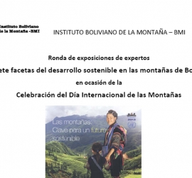El Instituto Boliviano de la Montaña (BMI) se complace en invitar a la ronda de exposiciones de expertos “Siete facetas del desarrollo sostenible en las montañas de Bolivia” en conmemoración del Día Internacional de las Montañas 2013 – “Las Montañas: Clave para un futuro sostenible”. El evento...
